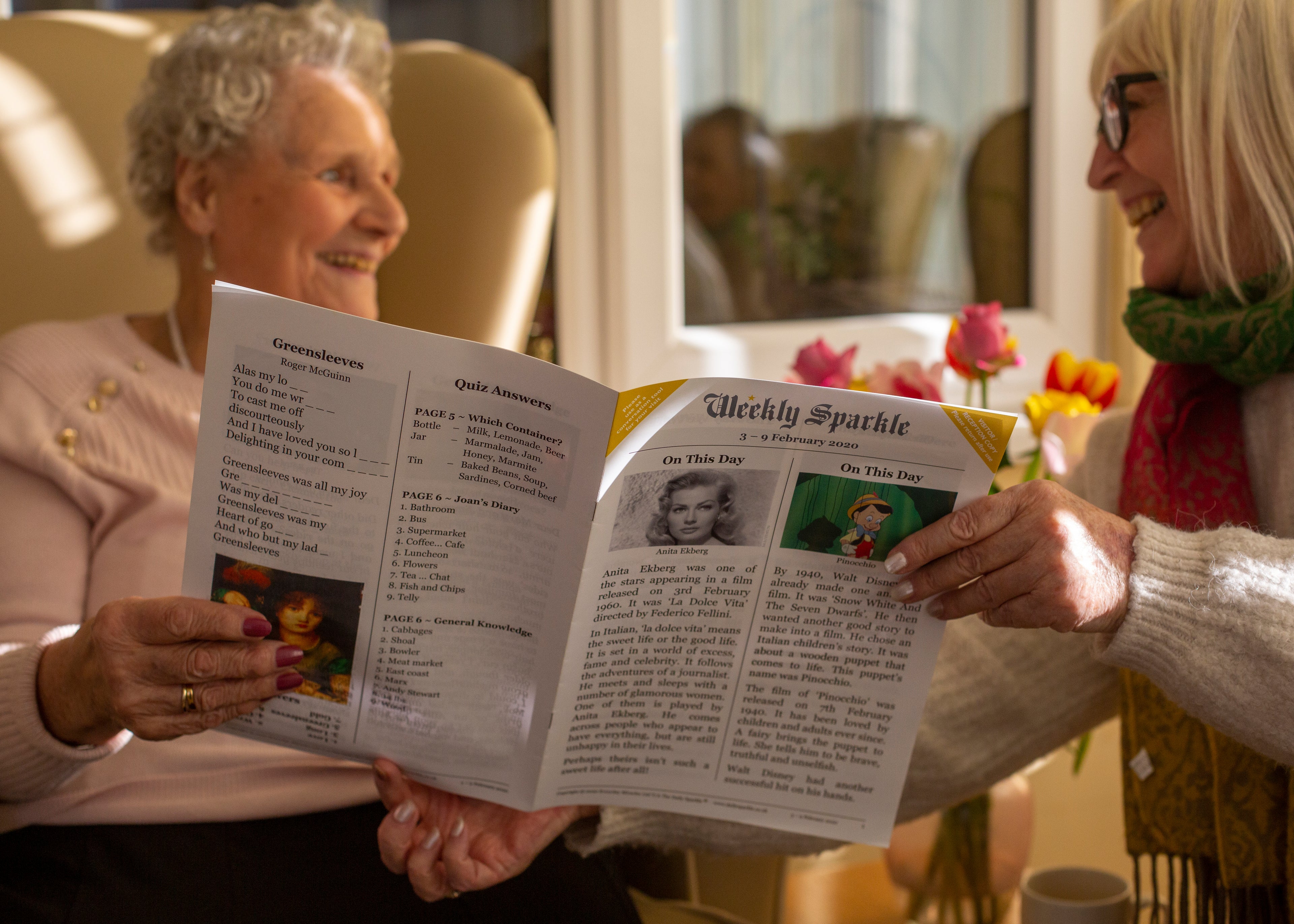 The Sparkles Magazine and the Weekly Sparkle evoke feelings of happiness and enhanced self-esteem. With short, easy-to-digest articles, older people will also enjoy sharing their precious memories with family members.